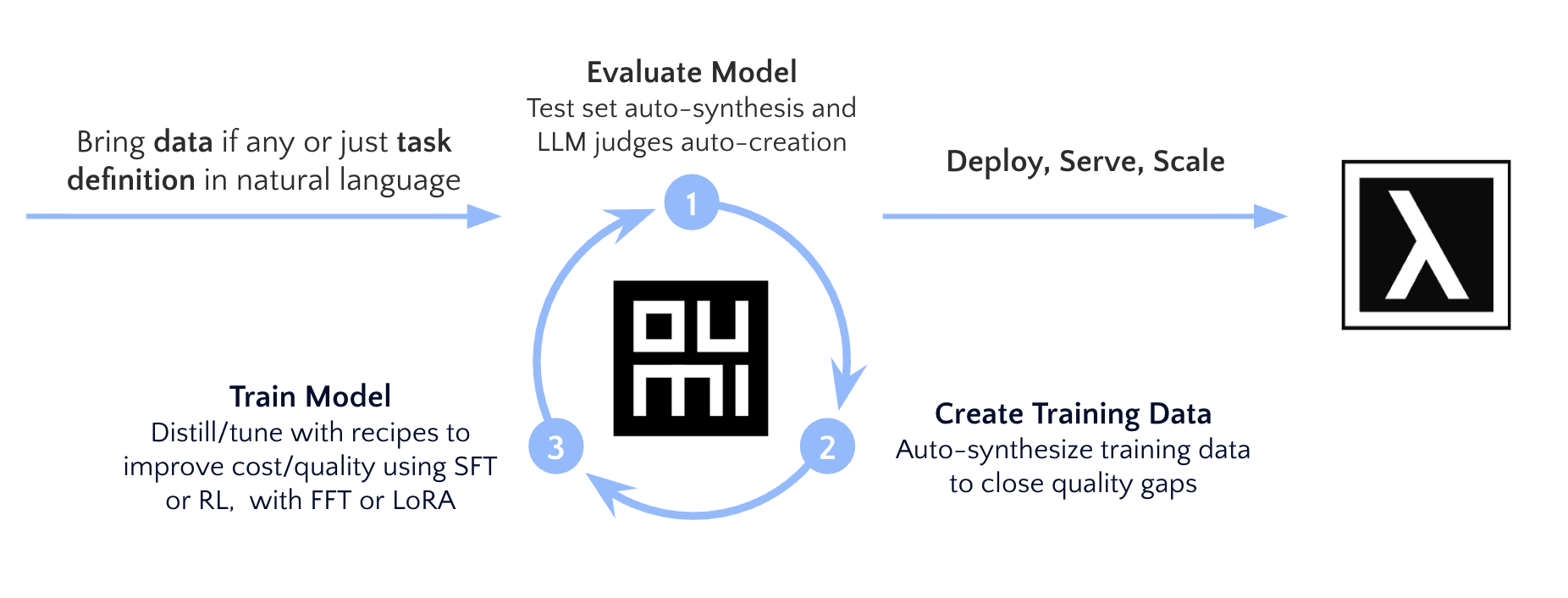 This partnership breaks the bottleneck: AI teams can now build and deploy custom models 100x faster. Oumi’s intelligently designed platform embeds deep technical expertise from its engineers and research scientists, enabling teams to develop custom AI in hours instead of months. Lambda’s GPU infrastructure delivers the speed, scale, and reliability production demands. When issues arise with models “in the wild,” Oumi resumes the development cycle, fixes issues, and redeploys to Lambda’s cloud. This is only possible through Oumi and Lambda’s tight integration of AI intelligence and infrastructure.